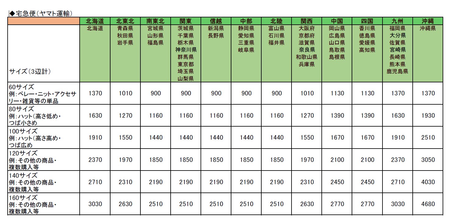 この度、弊社が提携しておりますヤマト運輸の送料値上げに伴い