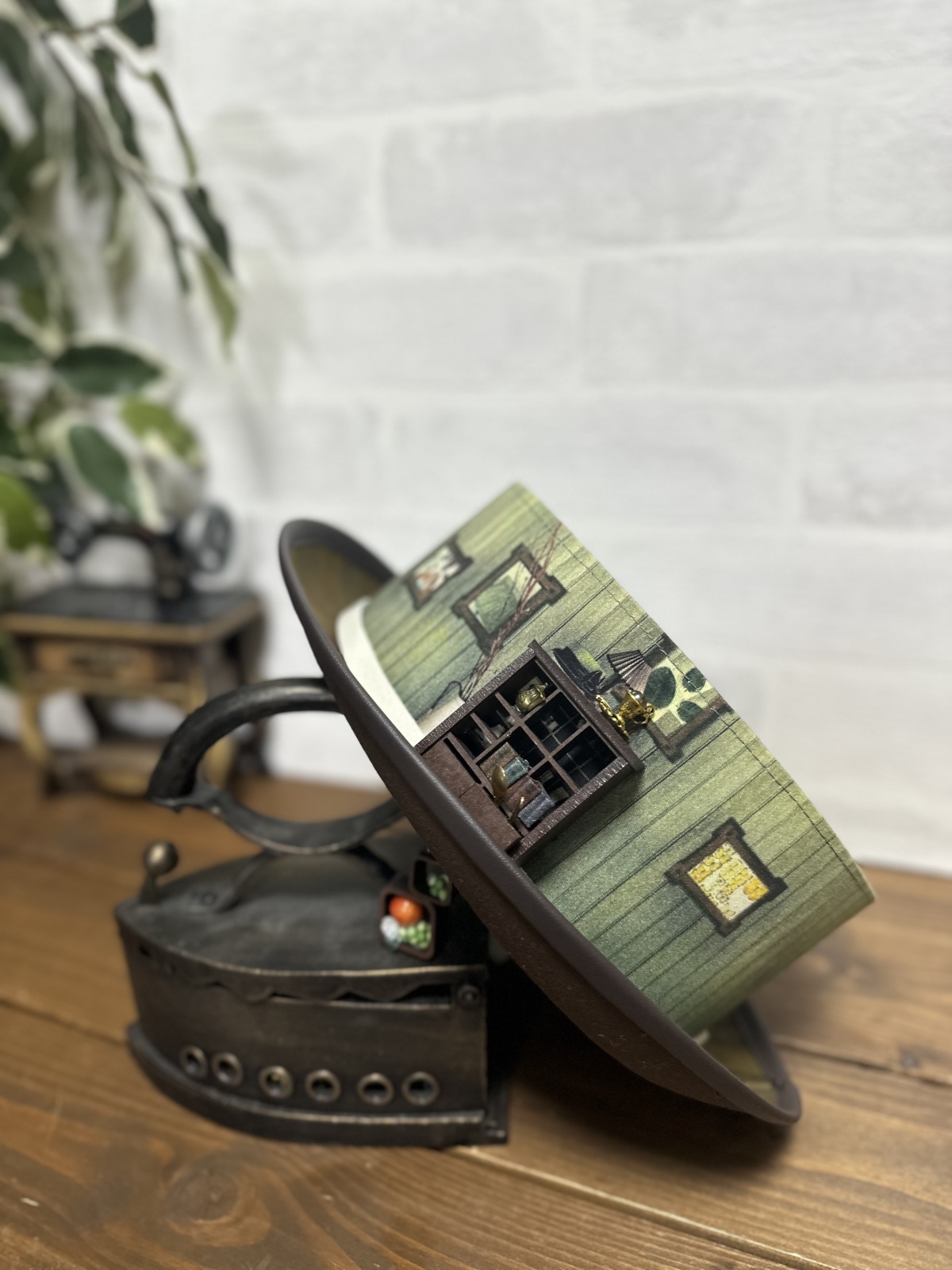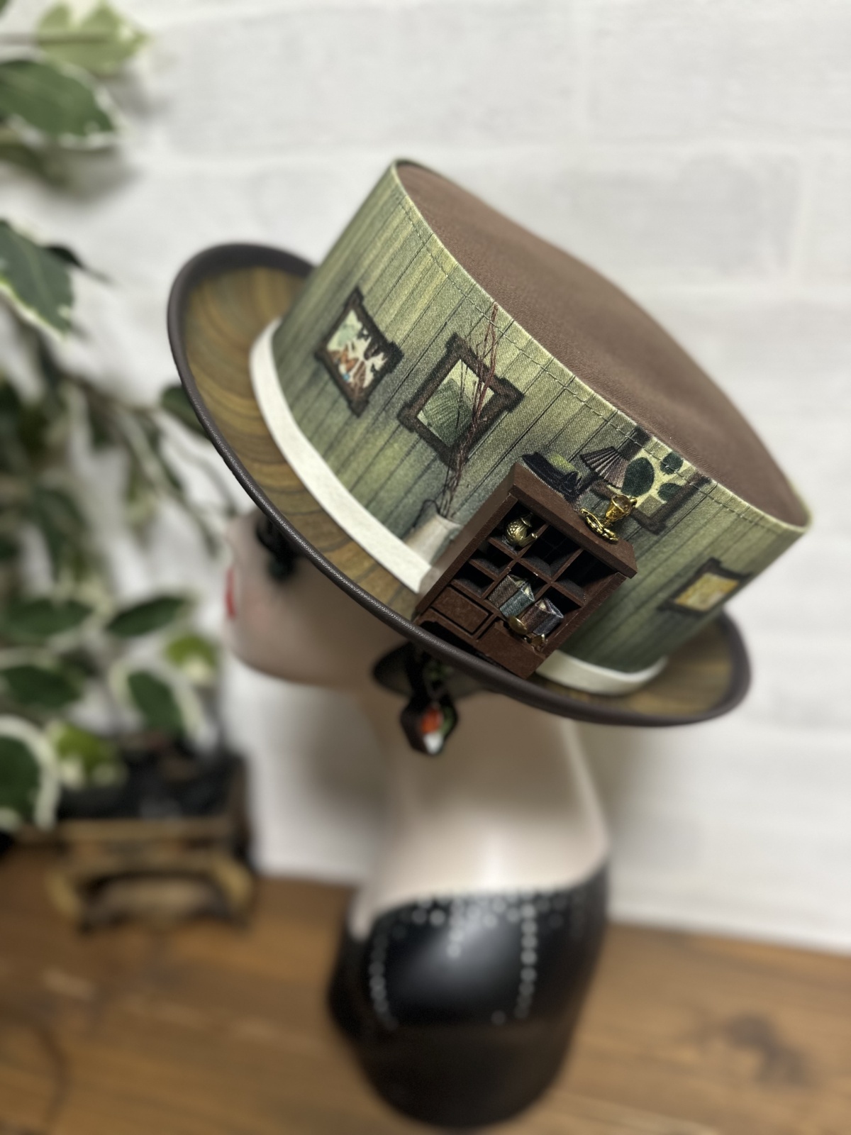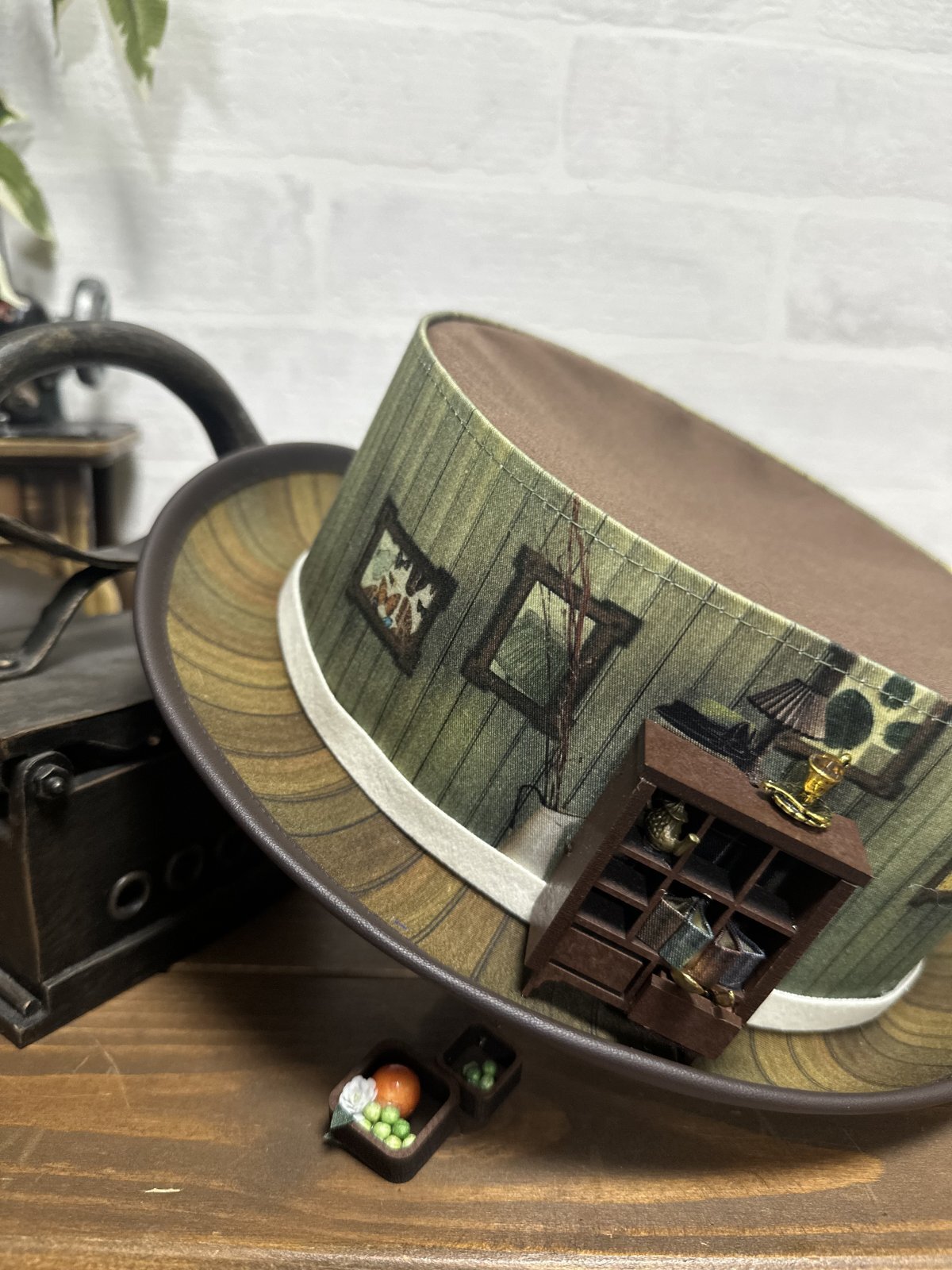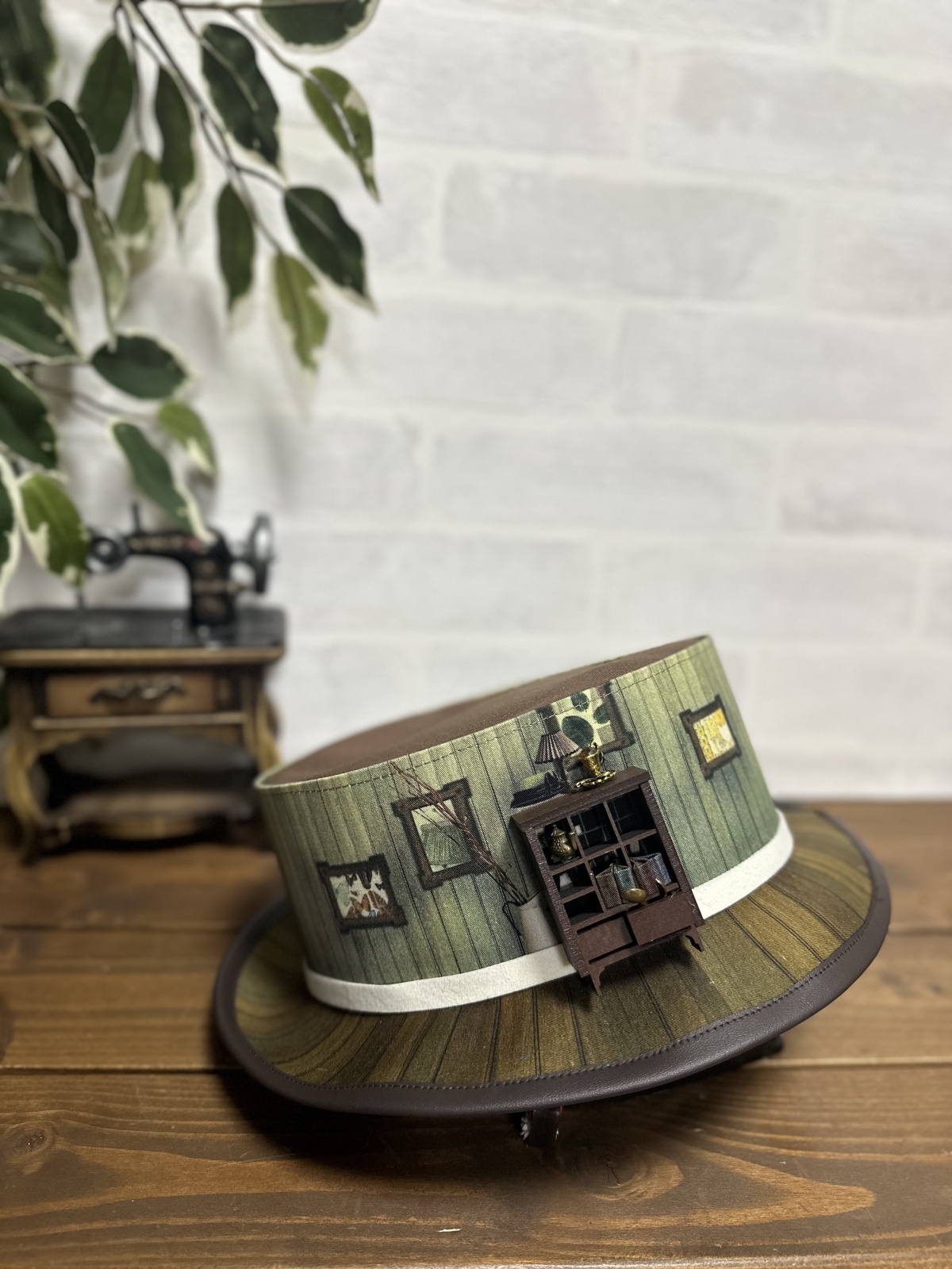 お茶を片手に読書はいかが?アンティークな小部屋を帽子で表現しました。