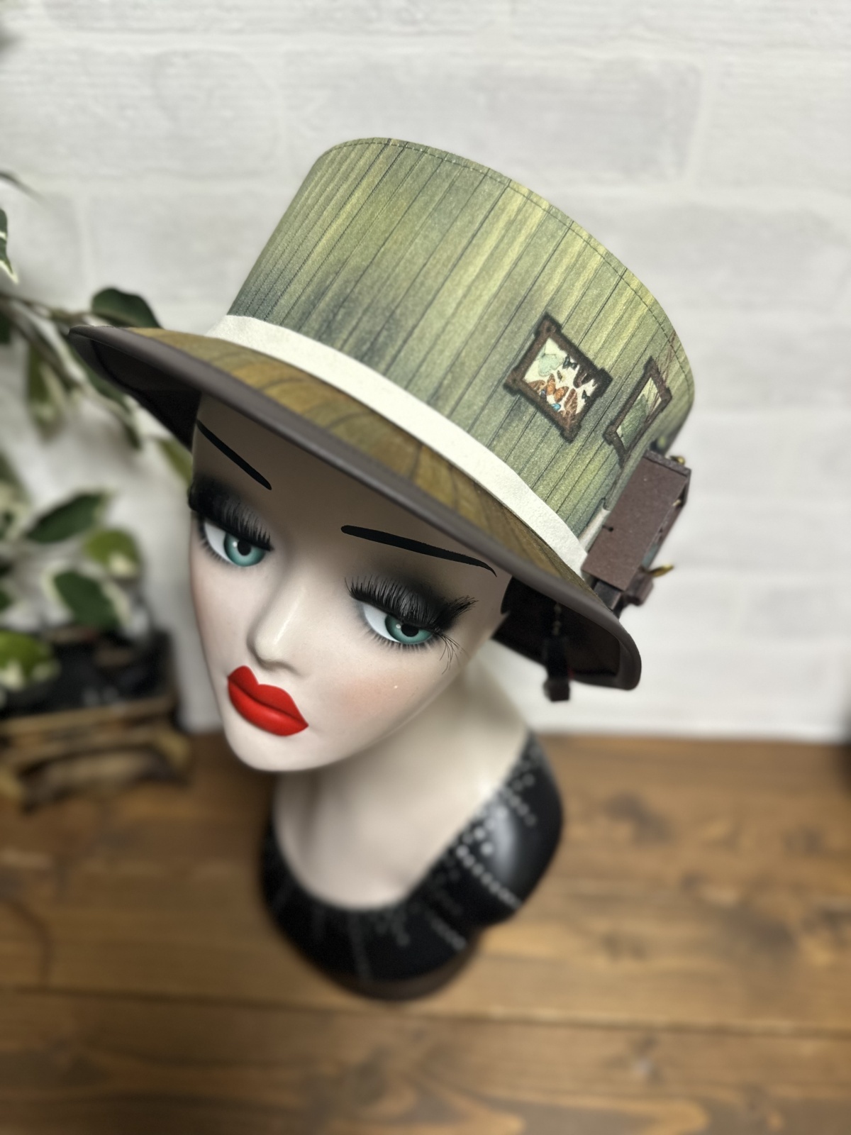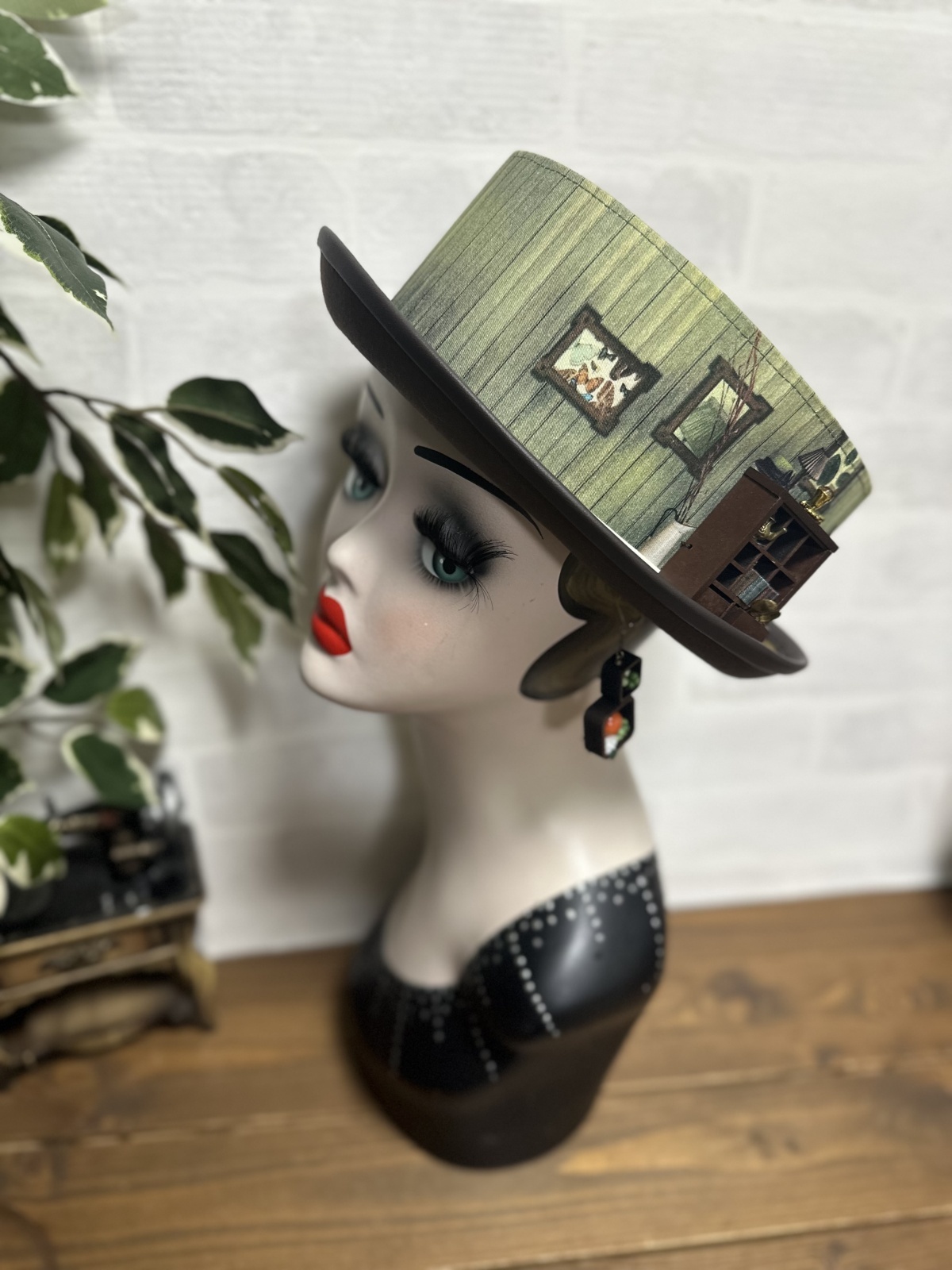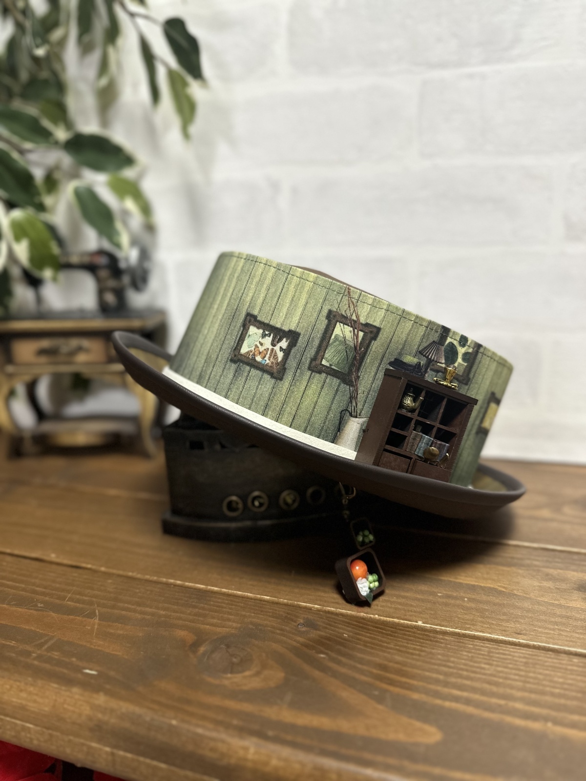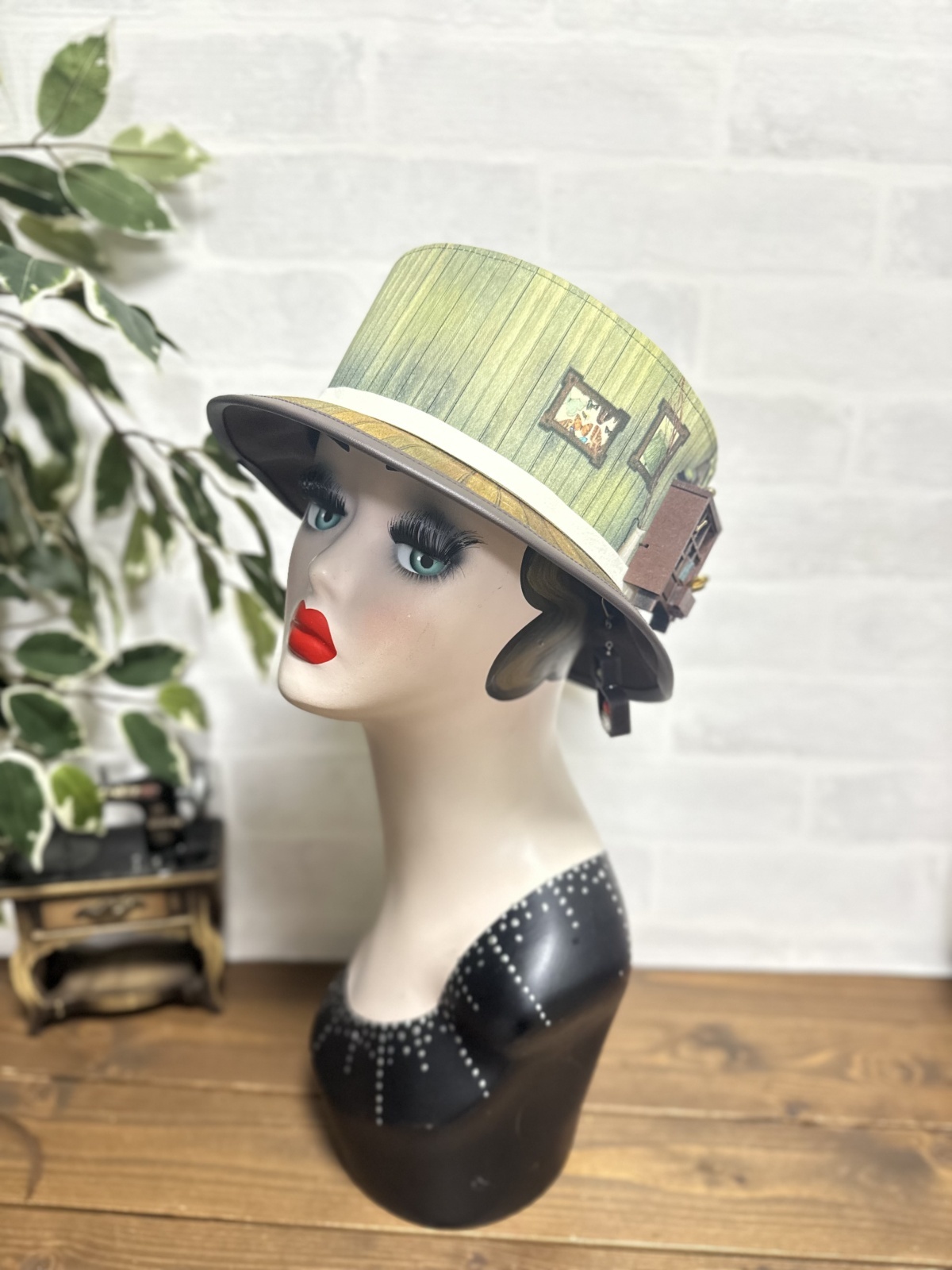 お茶を片手に読書はいかが?アンティークな小部屋を帽子で表現しました。