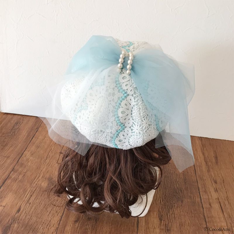 上質なレースの下からやわらかい色味を覗かせた乙女可愛い8枚はぎベレー。