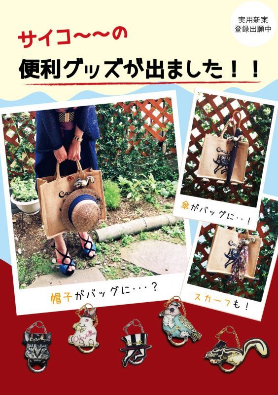 当店大人気の3Wayバッグチャームは「帽子」、「傘」、「スカーフ」がかけられちゃう優れもの!バッグチャームとしてももちろん、お出かけ先のお荷物整理にお役立てください!